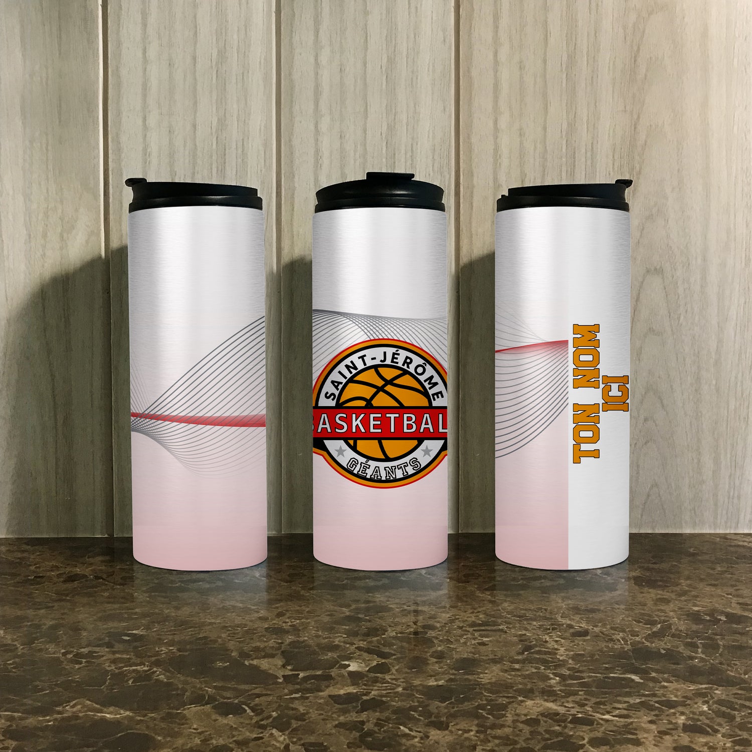 Hydrate-toi avec style grâce à cette bouteille d’eau de style tumbler, spécialement conçue pour les joueuses de Basketball St-Jérôme !