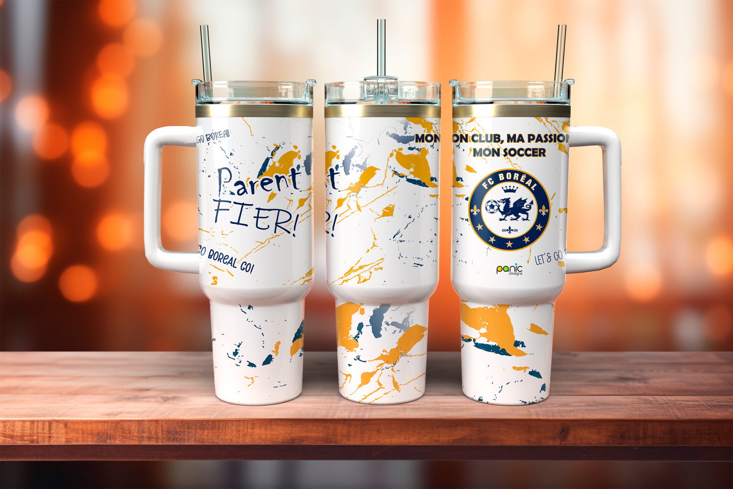 Montre fièrement ton soutien au FC Boréal avec ce tumbler de 40 oz, conçu spécialement pour les fans du club !